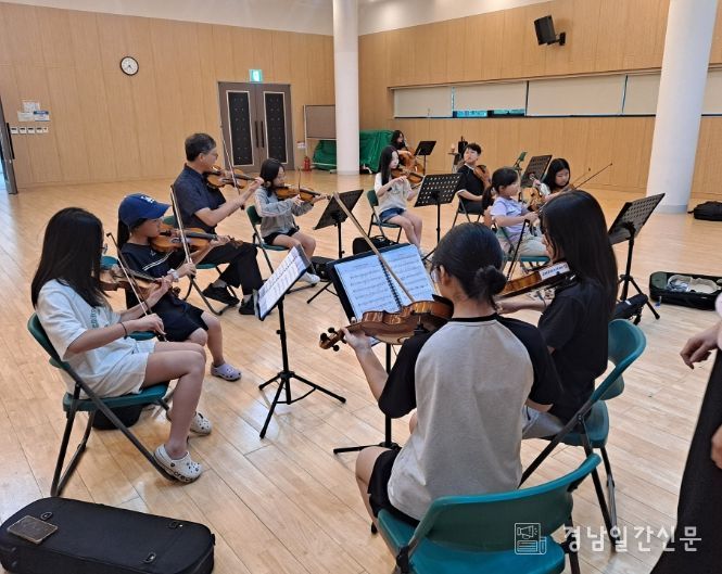 경남일간신문 | 고성군청소년센터“온”은 8월 12일, 여름방학을 맞아 현악3중주-ON악단 단원 12명을 대상으로 특별 프로그램'현악3중주 DAY'를 진행했다.