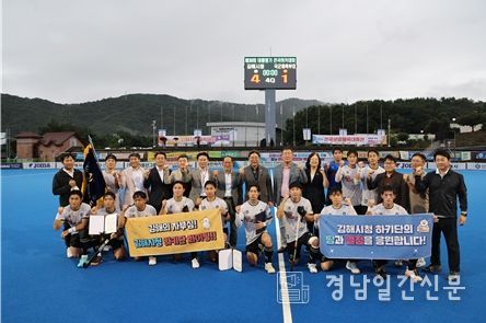 시민들과 열띤 응원을 펼친 홍태용 김해시장은 “김해시청 하키단 선수들의 우승을 축하드린다”며 “10월 개최되는 전국체전에도 좋은 성적을 거둘 수 있도록 행정적 지원을 아끼지 않겠다”고 말했다.