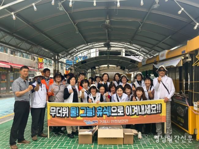 경남일간신문 | 거제시는 지난 8월 13일 고현시장 및 고현터미널 일대에서 폭염 예방을 위한 안전문화 캠페인을 실시했다.