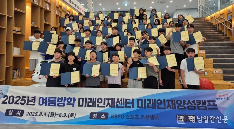 경남일간신문 | 진주미래인재학습지원센터는 지난 7월 31일부터 2주 동안 실시한 ‘2025년 여름방학 진로코칭캠프’를 지난 13일 초등반 수료식을 마지막으로 성황리에 마무리했다고 밝혔다.