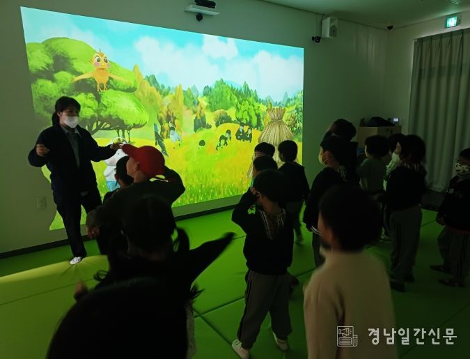 참여 어린이들은 도서관 이용 방법과 예절을 배우고, 사서 선생님과 함께 실감형 스크린 동화를 즐겼다.