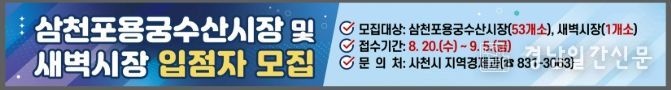 경남일간신문 | 사천시는 8월 20일부터 9월 5일까지 삼천포용궁수산시장(53개소)과 새벽시장(1개소) 빈 점포 사용자를 모집한다고 18일 밝혔다.