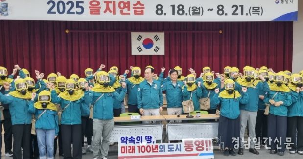 경남일간신문 | 통영시는 2025년 을지연습 특수시책으로 근무자 방독면 착용교육 및 착용근무, 현역군인 청사 경계근무를 실시했다고 밝혔다.