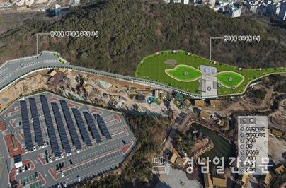 26일 시에 따르면 반려동물 테마공원은 가야테마파크 인근 분산성 공원 부지에 1만5,000㎡(4,500평) 규모로 조성 중이다.