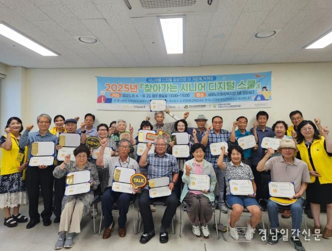경남일간신문 | 김해시복지재단 서부노인종합복지관은 지난 25일, ‘찾아가는 시니어 디지털스쿨’수료식을 성황리에 개최하며 총 4회기 디지털 교육 과정을 성공적으로 마무리했다.