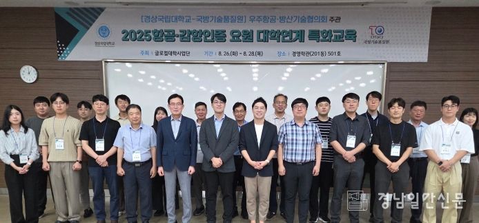 경남일간신문 | 경상국립대학교는 8월 26~28일 가좌캠퍼스 경영학관에서 경상국립대학교-국방기술품질원 우주항공·방산기술협의회 주관으로 ‘2025 항공·감항인증 요원에 대한 지역대학 연계 특화교육’을 실시한다.