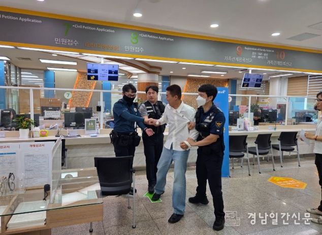 경남일간신문 | 김해시는 지난 28일 시청 행복민원실에서 ‘특이민원 발생 대비 모의훈련’을 실시했다고 29일 밝혔다.