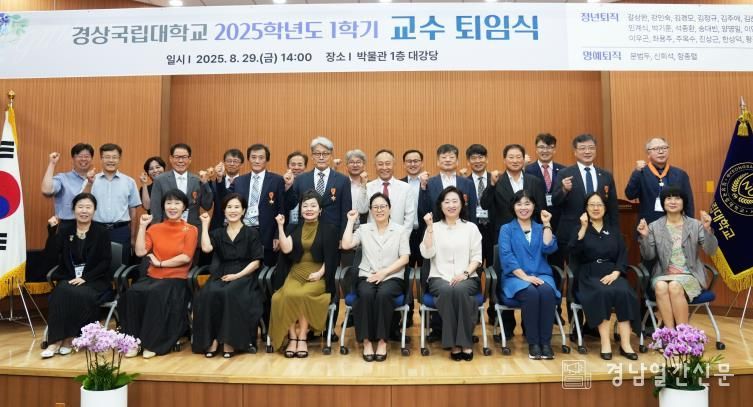 경남일간신문 | 경상국립대학교는 8월 29일 오후 2시 가좌캠퍼스 박물관 1층 대강당에서 2025학년도 1학기 교수 퇴임식을 개최했다.