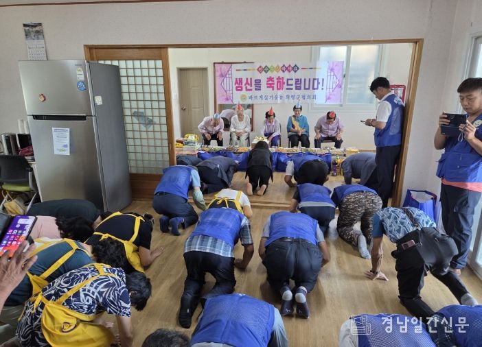 경남일간신문 | 바르게살기운동 의령군협의회는 여성봉사회, 유곡면위원회와 함께 지난 27일 유곡면 구송산마을회관에서 주민 50여명이 참석한 ‘생신상 나눔’ 행사를 열었다고 밝혔다. 이번 행사는 80세 이상 홀로 생활하시는 어르신 5분의 생신을 축하하기 위해 마련됐다.