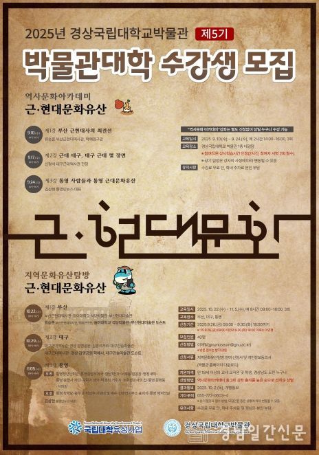 경남일간신문 | 경상국립대학교 박물관은 ‘2025년 제5기 박물관대학’을 개설하고 수강생을 모집한다.