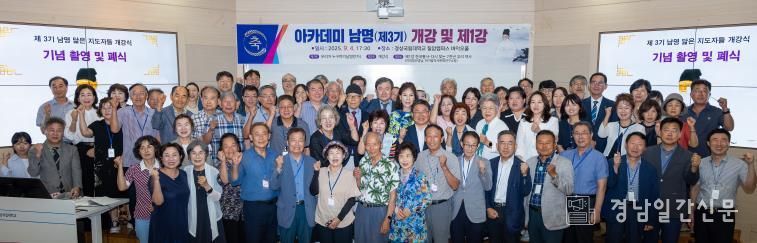 경남일간신문 | 경상국립대학교 남명학연구소, (사)남명사랑, (사)경남지역사회연구원(守中 김영기 연구기금)이 공동으로 주관하는 ‘아카데미 남명’은 9월 4일 저녁 칠암캠퍼스 바이오홀에서 제3기 개강식을 열고 1년 과정의 대장정을 시작했다.