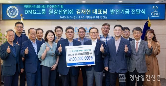 DMG그룹 원강산업(주)는 경상국립대학교에 현금 5000만 원과 현물 5000만 원을 기부하여 지역사회와 미래 인재 양성에 기여한다.