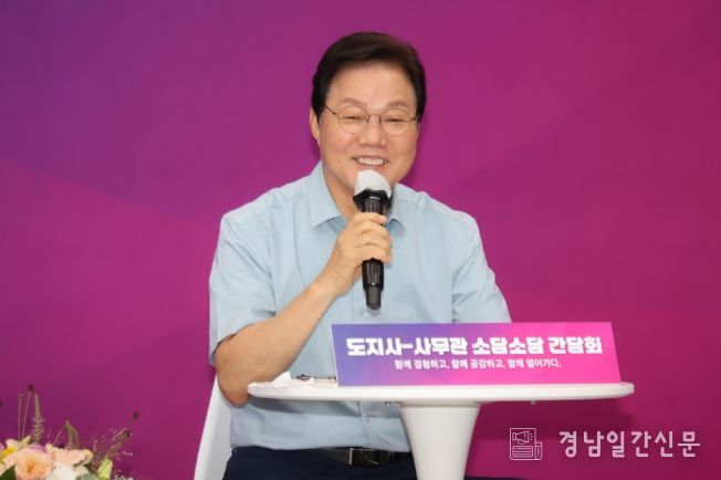 경남일간신문 | 경상남도는 5일 도청 대회의실에 ‘도지사-사무관, 소담소담 간담회’를 열고, 도지사와 중간관리자 간 허심탄회한 소통 시간을 가졌다.