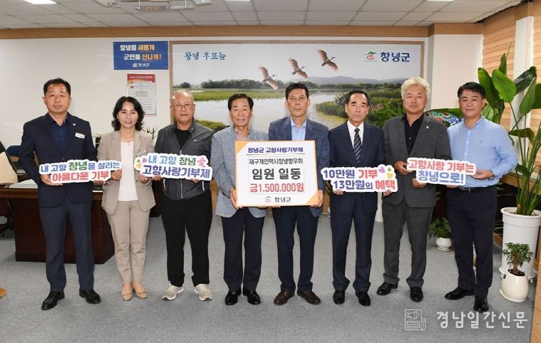 경남일간신문 | 창녕군은 지난 9일 재구개인택시창녕향우회(회장 전대범)가 고향사랑기부금 150만 원을 기탁했다고 밝혔다.