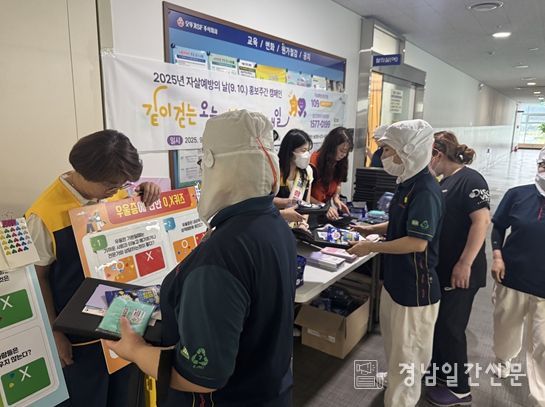 경남일간신문 | 고성군은 9월 9일 12시부터 고성군 오뚜기SF(주) 휴게실에서 사업체 근로자 250명을 대상으로 세계 자살예방의 날(9. 10.)을 기념하여 생명존중·자살예방 캠페인을 실시했다.