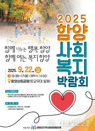경남일간신문 | 함양군은 오는 9월 22일 상림공원 토요무대에서 제3회 함양군 사회복지박람회를 개최한다고 밝혔다.