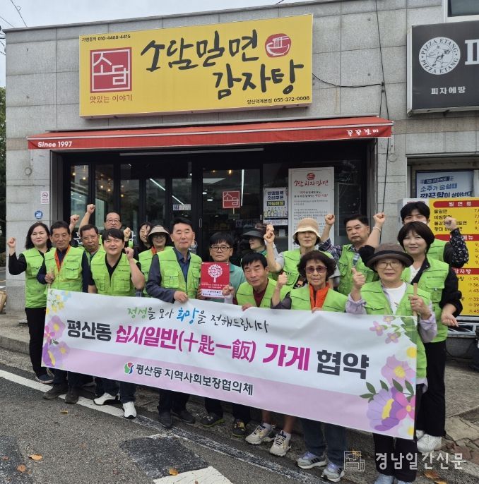 경남일간신문 | 평산동지역사회보장협의체(공동위원장 이상진‧김상걸)는 지난 19일 ‘소담밀면감자탕(대표 김경임)’을 '십시일반(十匙一飯) 가게' 제59호점으로 지정하고, ‘이웃愛 행복나눔’ 현판을 전달했다.