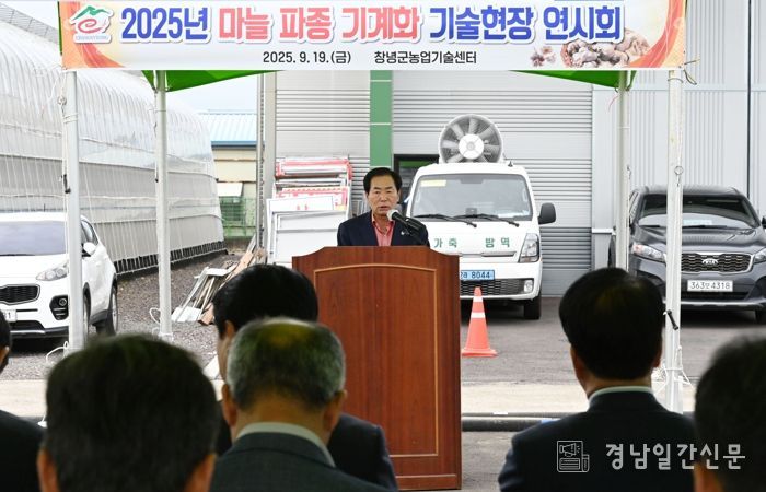 경남일간신문 | 창녕군은 지난 19일 창녕군농업기술센터에서 마늘연구회원, 마늘 재배 농업인 및 농기계 제조업체 등 80여 명이 참여한 가운데 ‘마늘 파종 기계화 현장 전시회’를 개최했다고 밝혔다.