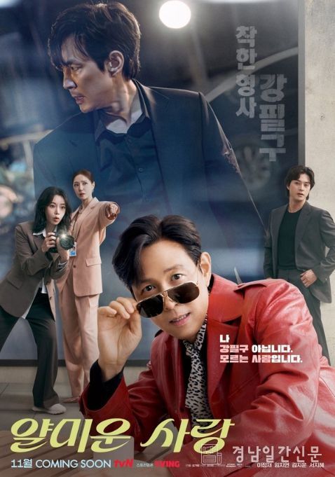 오는 11월 방송 예정인 tvN 새 월화드라마 ‘얄미운 사랑’(연출 김가람, 극본 정여랑, 기획∙제작 스튜디오드래곤, 스튜디오앤뉴, 아티스트컴퍼니) 측은 26일 임현준(이정재 분)의 ‘인생캐’ 강필구 포스터와 임현준, 위정신(임지연 분), 이재형(김지훈 분), 윤화영(서지혜 분)의 시너지를 기대케 하는 ‘탈(脫)강필구’ 단체 포스터를 공개했다.