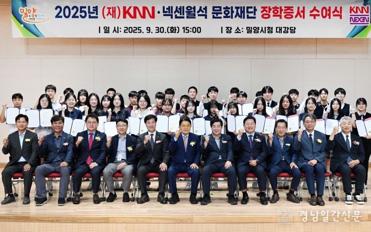 경남일간신문 | 경남 밀양시는 30일 시청 대강당에서 (재)KNN문화재단·(재)넥센월석문화재단(이사장 강병중) 장학증서 수여식을 개최했다고 밝혔다.