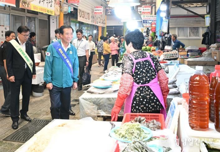 구 군수는 시장 곳곳을 돌며 상인들의 애로사항을 청취하고 명절 대목을 준비하는 상인들의 노고를 격려했으며, 군민들과도 소통하며 현장의 목소리에 귀 기울였다.