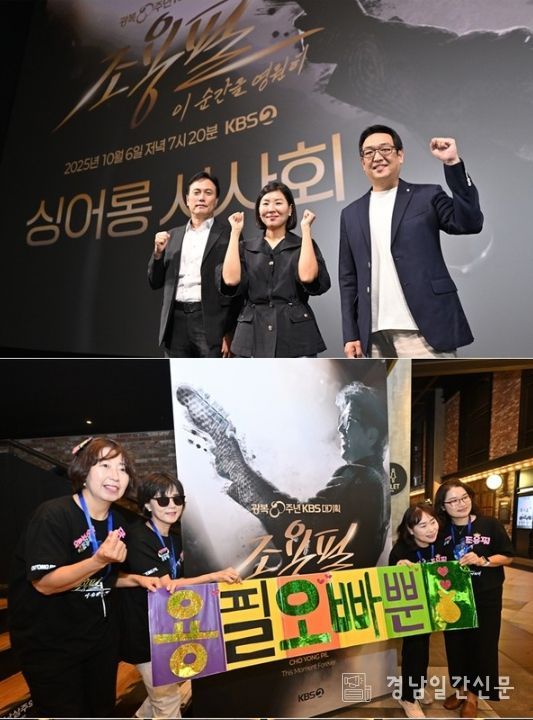 경남일간신문 | KBS2TV 광복 80주년 KBS 대기획 '조용필, 이 순간을 영원히'의 싱어롱 시사회가 관객들의 열띤 호응 속에 성료했다.