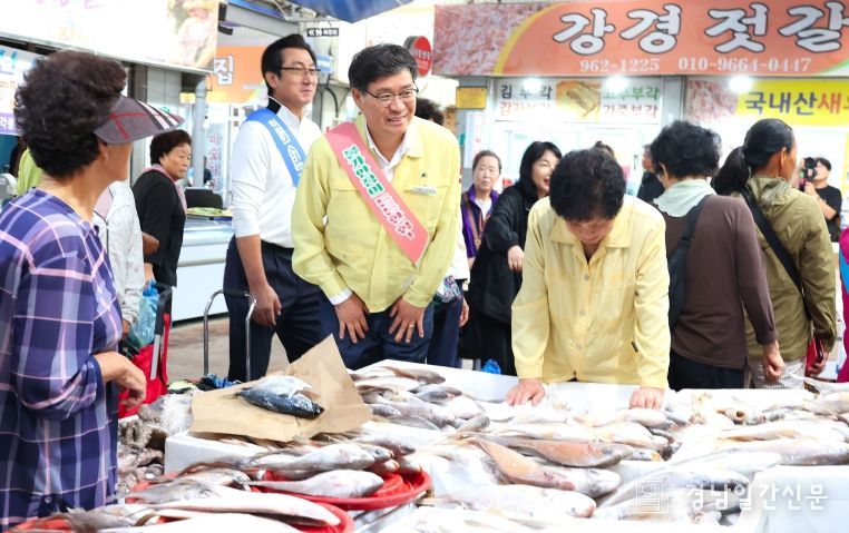 경남일간신문 | 진병영 함양군수는 추석 명절을 앞둔 10월 2일 오전, 지리산함양시장을 찾아 상인들을 격려하고 군민들의 민생 현장을 직접 점검했다.