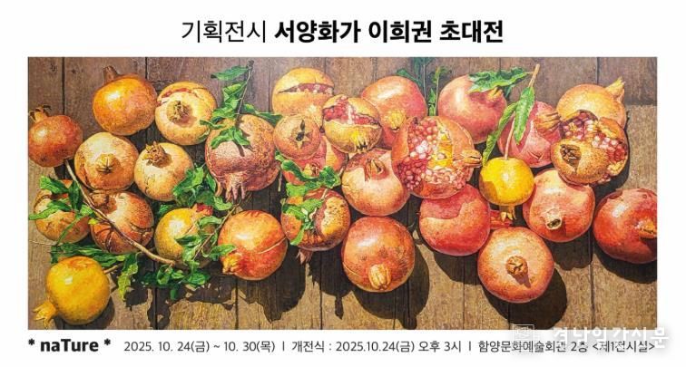 경남일간신문 | 함양군은 오는 10월 24일부터 30일까지 함양문화예술회관 제1전시실에서 2025년 기획 전시로 서양화가 이희권 작가를 초대해 ‘naTure(네이처)’를 개최한다.