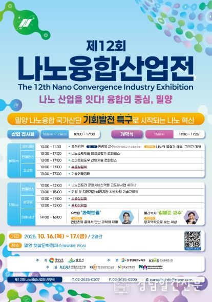 경남일간신문 | 경상남도는 오는 16일부터 17일까지 이틀간 밀양햇살문화캠퍼스에서 ‘나노산업을 잇다! 융합의 중심, 밀양’을 주제로 제12회 나노융합산업전(나노피아 2025)을 개최한다고 밝혔다.