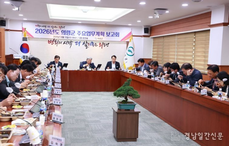 경남일간신문 | 의령군은 15일 군청 회의실에서 신규·핵심사업과 내년도 주요 사업의 실행 계획을 논의하기 위한 ‘2026년도 주요업무계획 보고회’를 개최했다고 밝혔다.