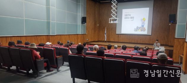 경남일간신문 | 고성군은 10월 15일 고성군 농업기술센터 친환경농업연구소 강당에서 녹지공원과 기간제근로자 30여 명을 대상으로 보호구 착용 및 안전수칙 준수를 철저히 하기 위한 교육을 실시했다.
