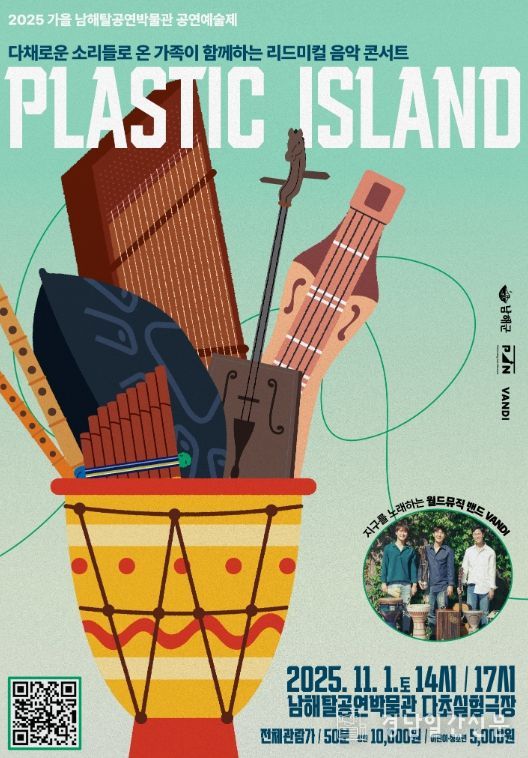 경남일간신문 | 남해탈공연박물관(이동면 남해대로 2412)은 오는 11월 1일, 월드뮤직 콘서트 ‘플라스틱 아일랜드 Plastic Island’를 개최한다.