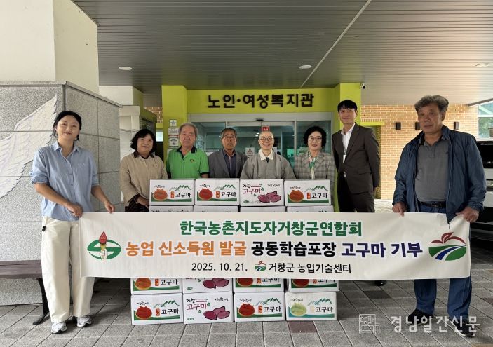 경남일간신문 | 한국농촌지도자거창군연합회는 지난 21일 거창군 삶의 쉼터(노인‧여성‧장애인복지관)에 사랑의 고구마 10kg들이 25박스 총 250kg을 기부했다.