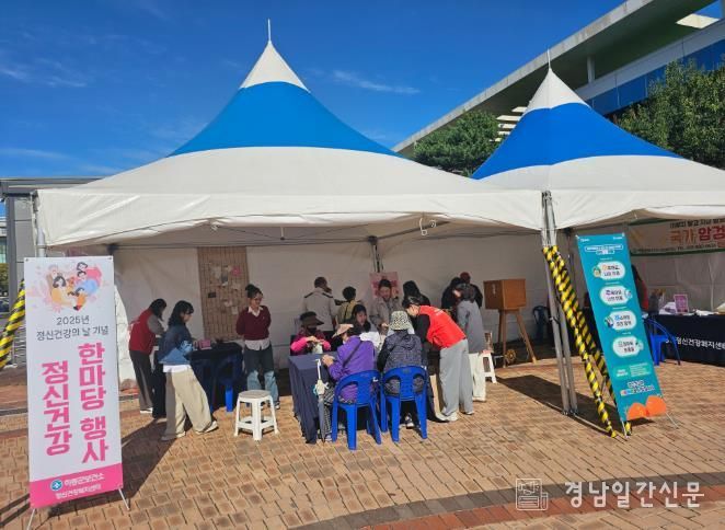 경남일간신문 | 하동군 정신건강복지센터가 하동군보건소 앞 광장에서 “2025년 정신건강 한마당 행사”를 진행 중이다.