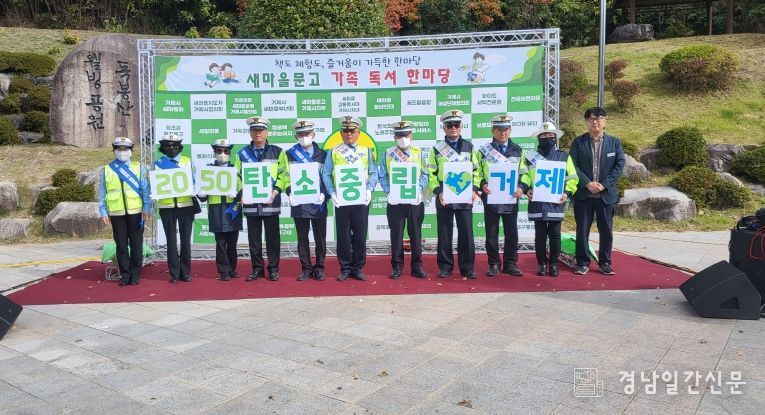 경남일간신문 | 거제시는 지난 8일, 독봉산웰빙공원에서 새마을문고 거제시지부(회장 신종엽)와 함께 ‘탄소중립 실천 캠페인’을 진행했다.