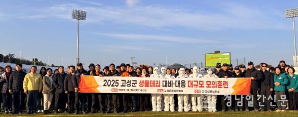 경남일간신문 | 고성군은 군민의 생명과 안전을 지키기 위해 2025년 11월 20일 고성군종합운동장에서 ‘2025년 생물테러 대응 대규모 모의훈련’을 성공적으로 실시했다고 밝혔다.