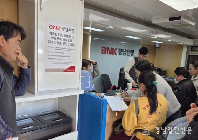 이에 고성군은 지난 20일부터 이틀간 BNK경남은행의 협조를 받아, 은행 창구 시스템을 갖춘 특수 차량을 농가 접근성이 뛰어난 영오면 나눔복지센터 주차장에 투입했다.