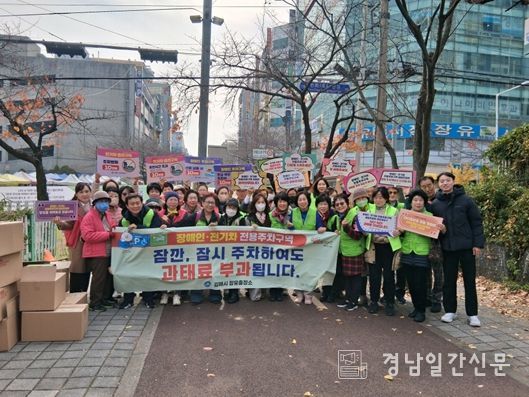 경남일간신문 | 김해시 장유출장소는 1일 오전 11시 장유2동 젤미마을 오일장 일원에서 장애인·전기차 전용주차구역 불법주차 근절을 위한 민관 합동 캠페인을 진행했다.