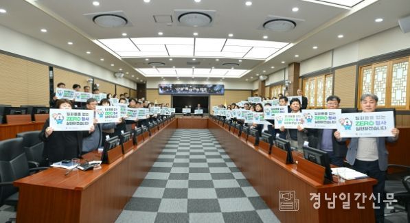 경남일간신문 | 거제시는 12월 1일 거제시청 중회의실에서 열린 확대간부회의 직후, 거제시장을 비롯한 간부 공무원 63명이 함께한 가운데 ‘1회용품 제로화 청사 선언’을 진행했다.