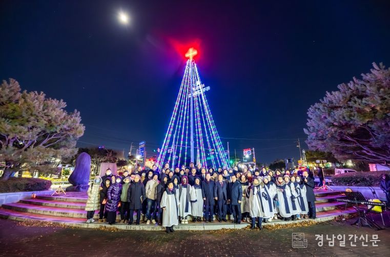 조근제 군수는 축사를 통해 “군민의 평안과 화합을 기원하는 성탄트리의 점등을 축하한다”며 “예수님의 사랑과 은혜가 온 세상에 퍼져 행복과 희망이 가득한 함안군을 만들어 주길 기대한다”고 말했다.