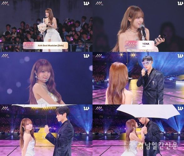 경남일간신문 | 가수 최예나(YENA)가 'AAA' 베스트 뮤지션 상을 수상, 추영우와 설렘 퍼포먼스로 존재감을 드러냈다.