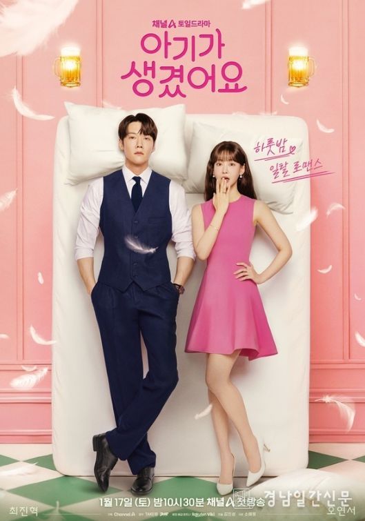 채널A ‘아기가 생겼어요’는 이번 생에 결혼은 없다던 두 남녀의 하룻밤 일탈로 벌어진 역주행 로맨틱 코미디로, 동명의 인기 네이버 웹툰을 원작으로 한다.