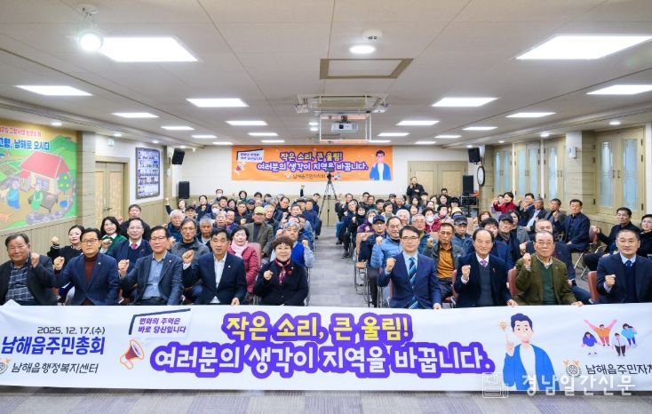 경남일간신문 | 남해읍 주민자치회(회장 하희택)는 17일 오후 2시, 남해읍행정복지센터 2층 회의실에서 주민과 함께하는 2025년 남해읍 주민총회를 개최했다.