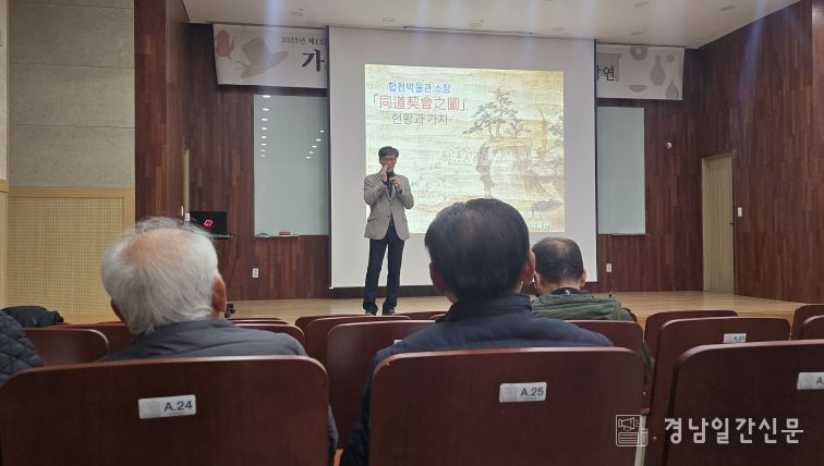 경남일간신문 | 합천군 합천박물관은12월 18일, 2025년 제15회 특별기획전 '가보, 모두와 함께 나누다'와 연계한 특별 강연 프로그램의 첫 강연을 성황리에 개최했다고 밝혔다. 이번 특별 강연은 지역의 문중과 단체가 전승해온 가보에 담긴 역사적 의미를 살펴봄과 함께, 전시에 대한 심층 이해를 돕고 지역민에게 폭넓은 문화 향유 기회를 제공하고자 기획됐다.