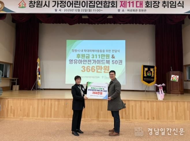 경남일간신문 | 창원특례시는 창원시가정어린이집연합회에서 22일 개최된 제10·11대 회장 이취임식을 맞이하여 관내 학대피해아동을 지원하기 위한 후원금과 도서를 창원시아동보호전문기관에 전달했다고 밝혔다.