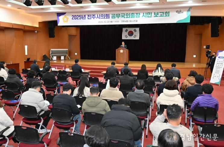 경남일간신문 | 진주시의회는 22일 시민과 시 관계부서 공무원, 출연·유관기관 관계자 등이 참석한 가운데 ‘2025년 진주시의회 공무국외출장 시민보고회’를 시청 시민홀에서 열고, 해외 연수 성과의 정책 적용 가능성을 시민과 함께 살폈다.