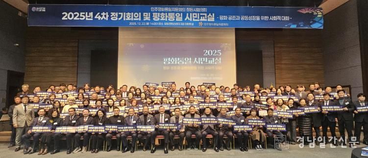 경남일간신문 | 민주평화통일자문회의 창원시협의회는 22일 창원컨벤션센터 대회의실에서 자문위원 150여 명이 참석한 가운데 2025년 제4차 정기회의 및 평화통일 시민교실을 개최했다.