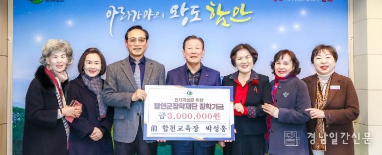 경남일간신문 | 함안군은 법수면 황사리 출신의 박성홍 전 합천교육장이 고향 인재 육성을 위한 장학기금 300만 원을 기탁했다고 밝혔다.