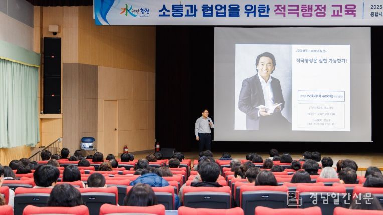 경남일간신문 | 합천군은 23일 합천군종합사회복지관 3층 대강당에서 전 직원을 대상으로 ‘2025년 적극행정 교육’을 오전·오후 2회차로 나누어 실시했다.