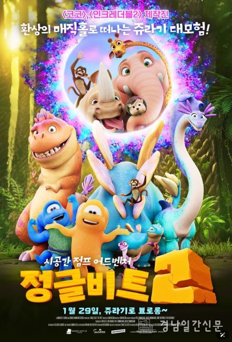 경남일간신문 | 오는 1월 29일 개봉을 앞둔 전 세계 60억 뷰 인기 시리즈 원작 애니메이션 '정글비트2'가 메인 포스터와 보도스틸을 공개해 화제를 모았다.[감독 : 샘 윌슨 | 수입/배급 : 박수엔터테인먼트 | 등급 : 전체관람가]